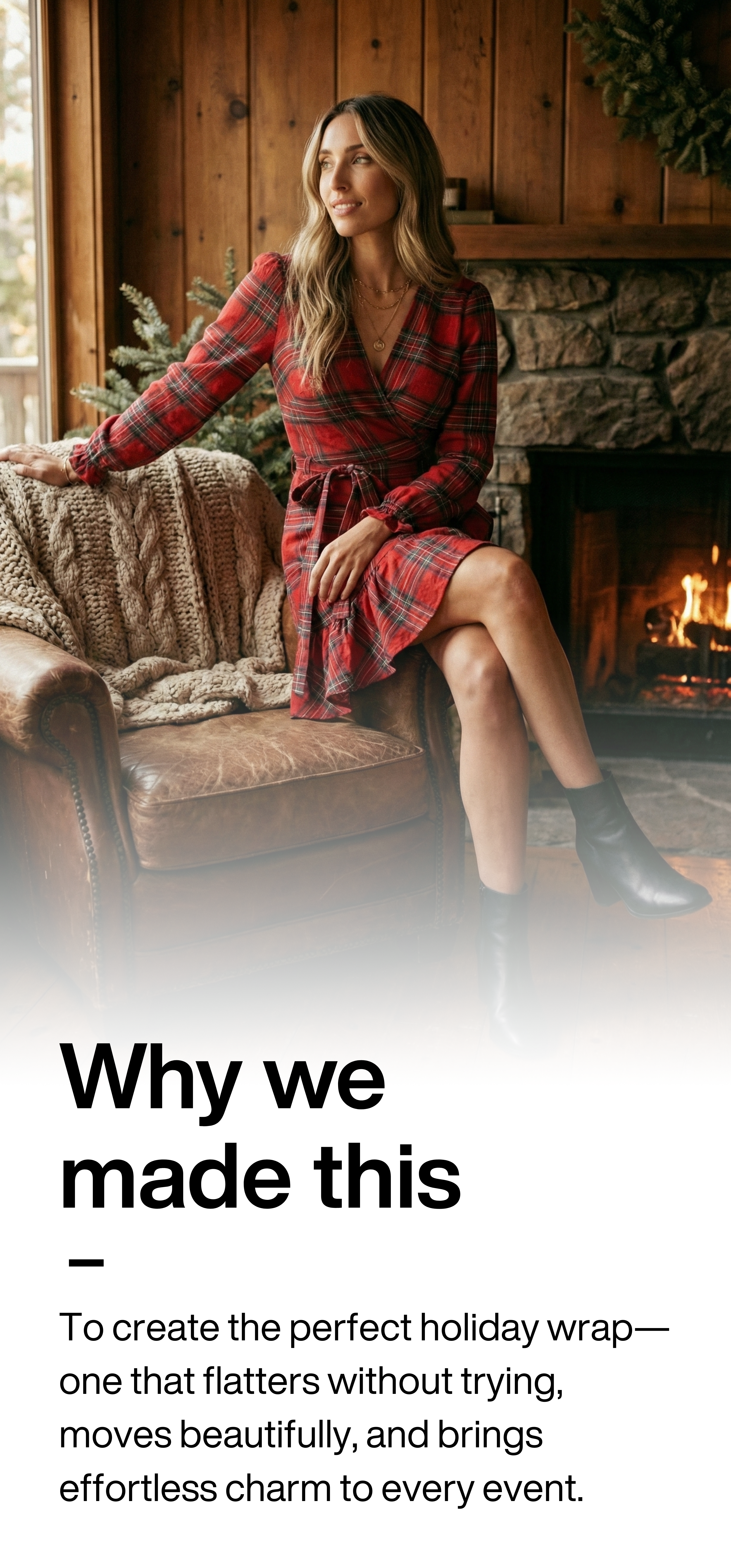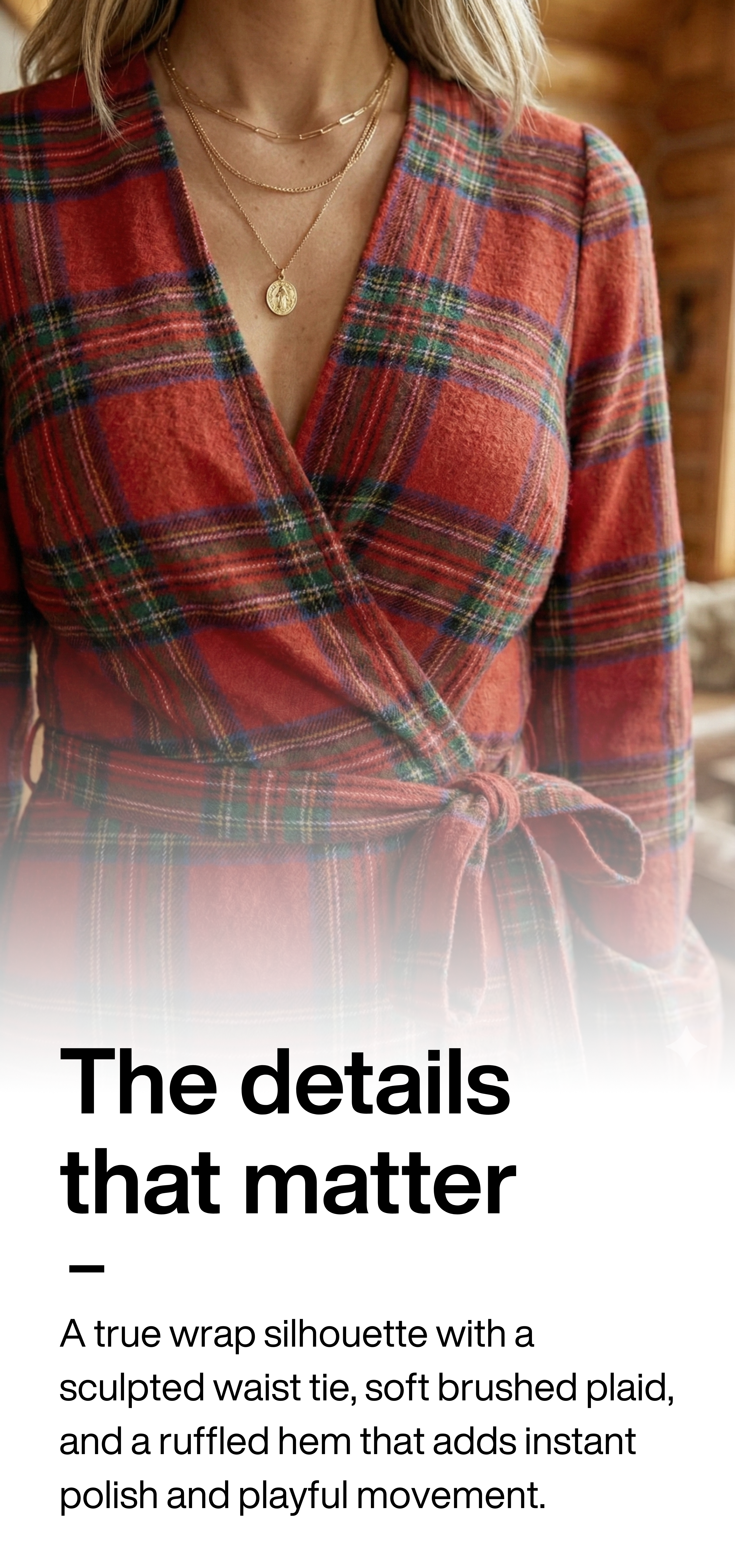 Warm, soft, and unmistakably festive. A cozy wrap silhouette that flatters instantly and feels even better on.