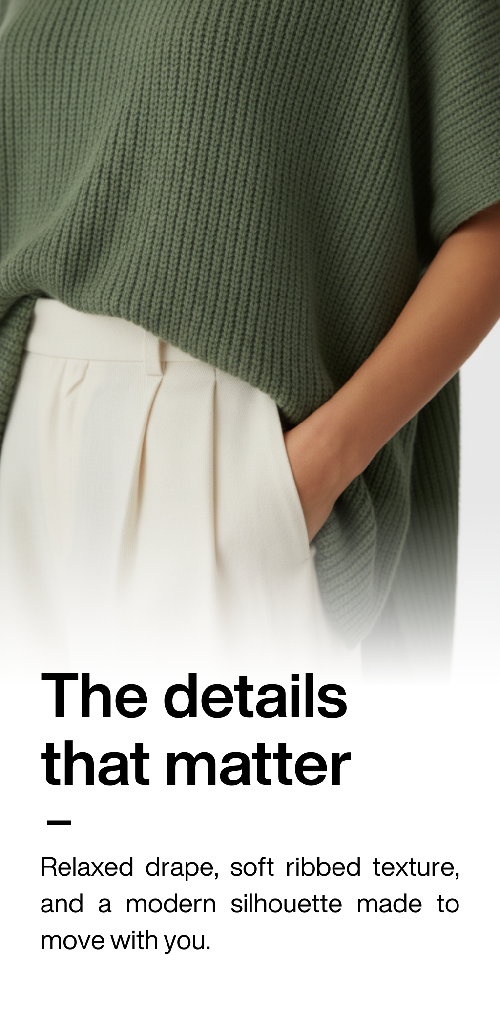 Relaxed drape with a longer back for confident coverage — perfect with leggings or trousers. Effortless comfort that flatters every shape.