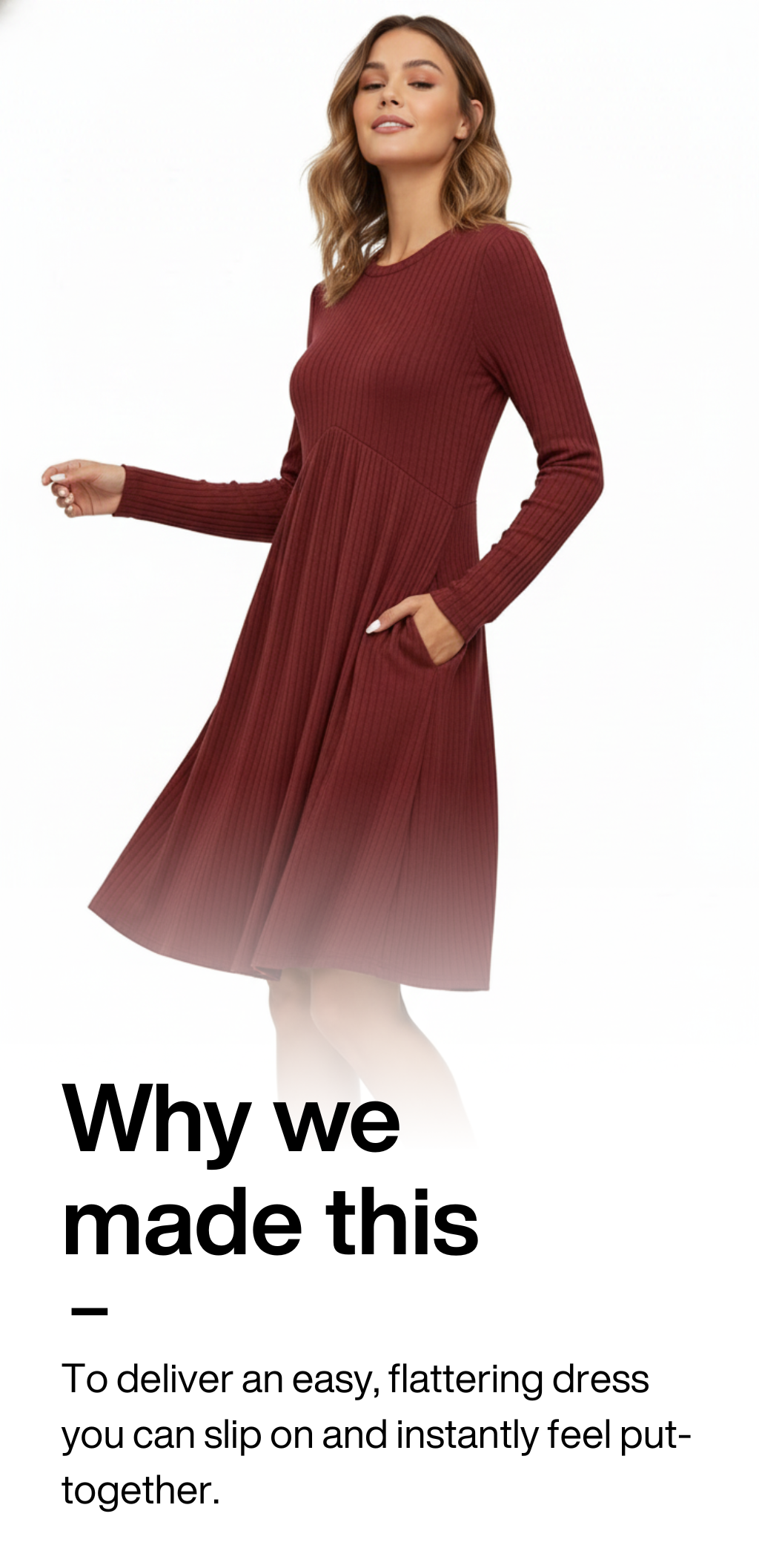 This dress is super soft and pretty. Pairing it with tights and knee high boots is chef kiss. True to size and comfy, color is beautiful for fall. I love how easy it is to style.