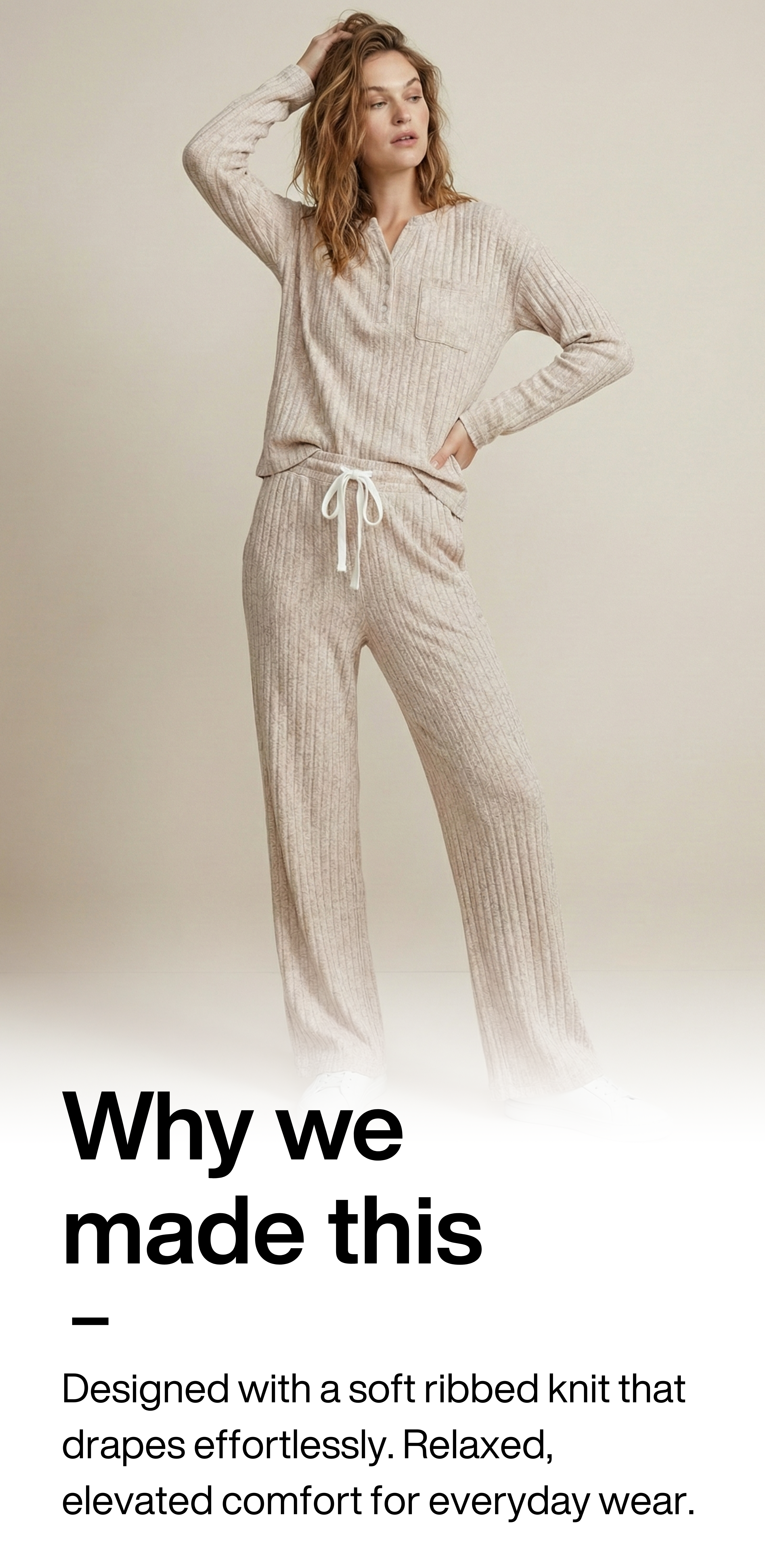 A climate-adaptive knit engineered to regulate temperature, move with your body, and maintain softness wear after wear.