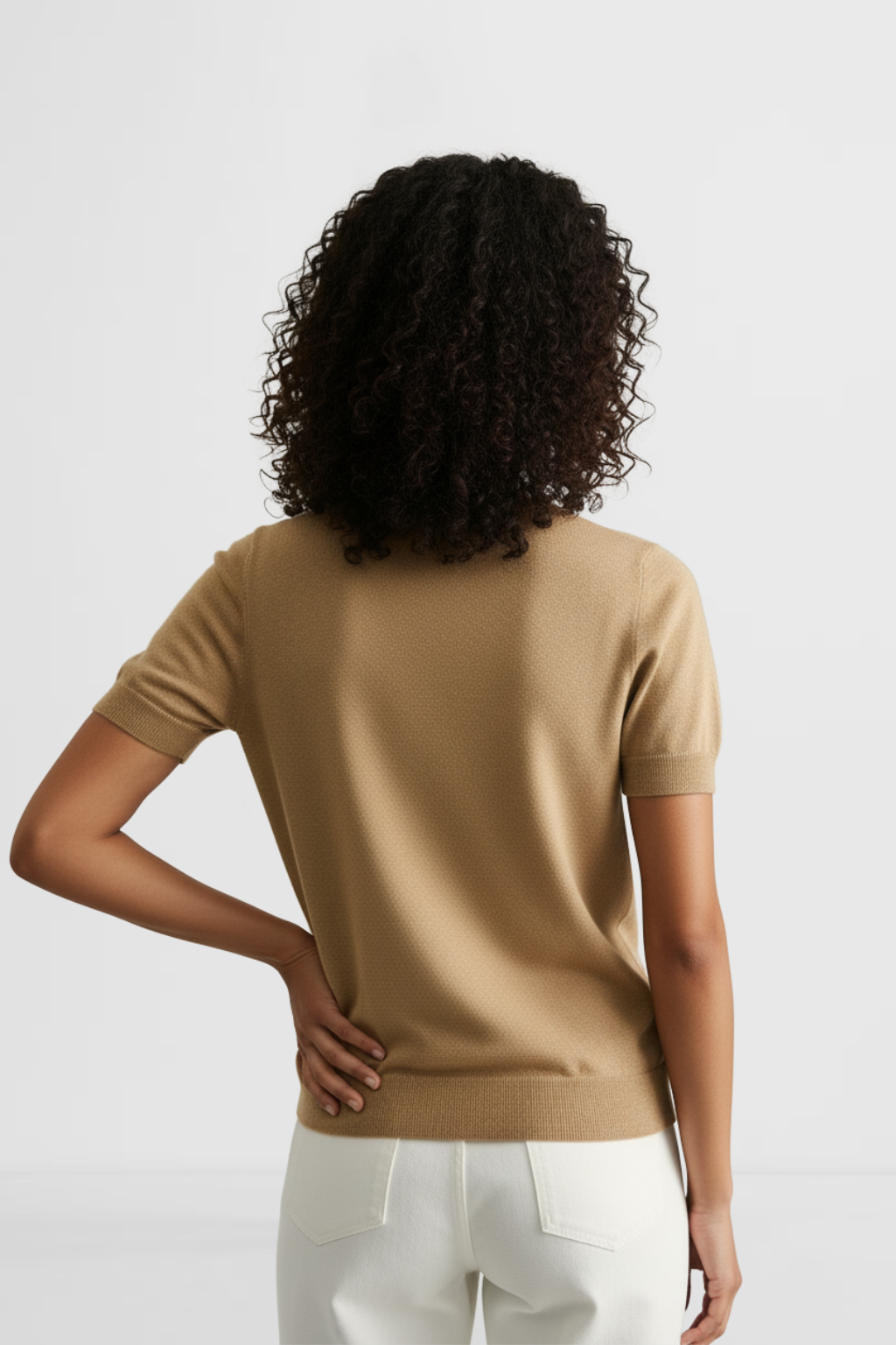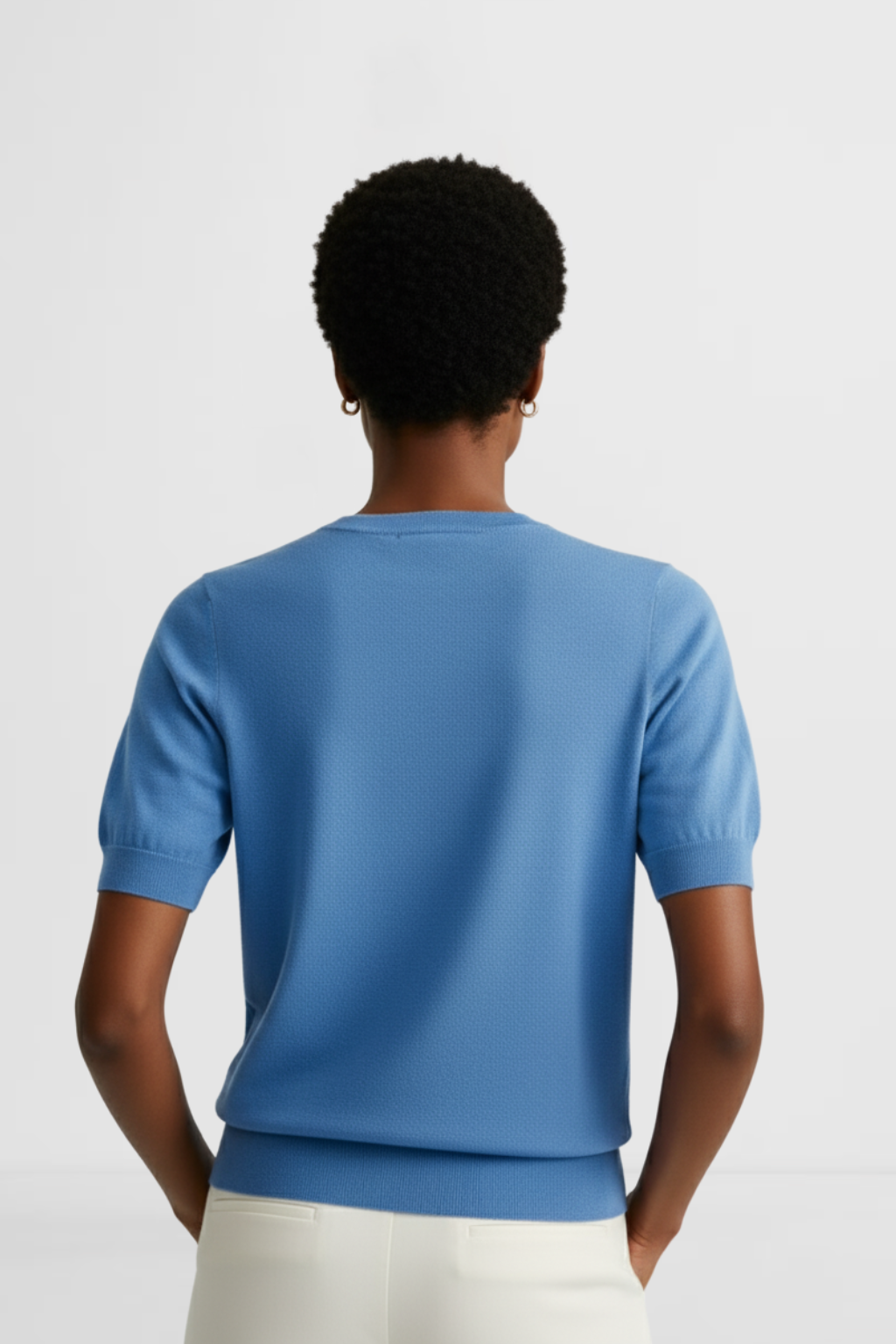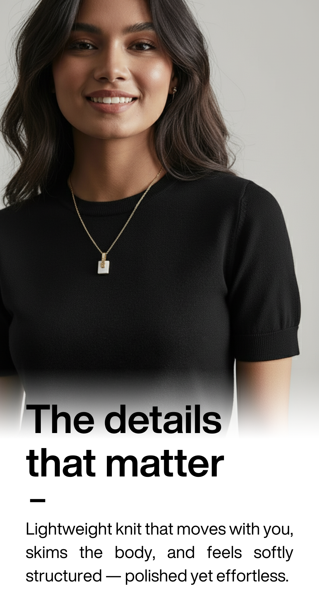 Refined knit top with breathable softness, everyday versatility, and a polished, sculpted fit.