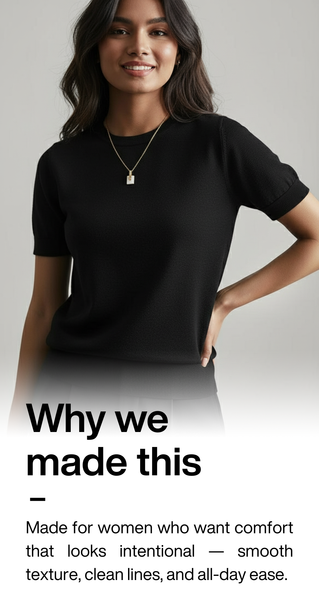 Clean crew neckline, soft stretch, and a refined finish that moves with you. Designed to layer or wear solo, season after season.