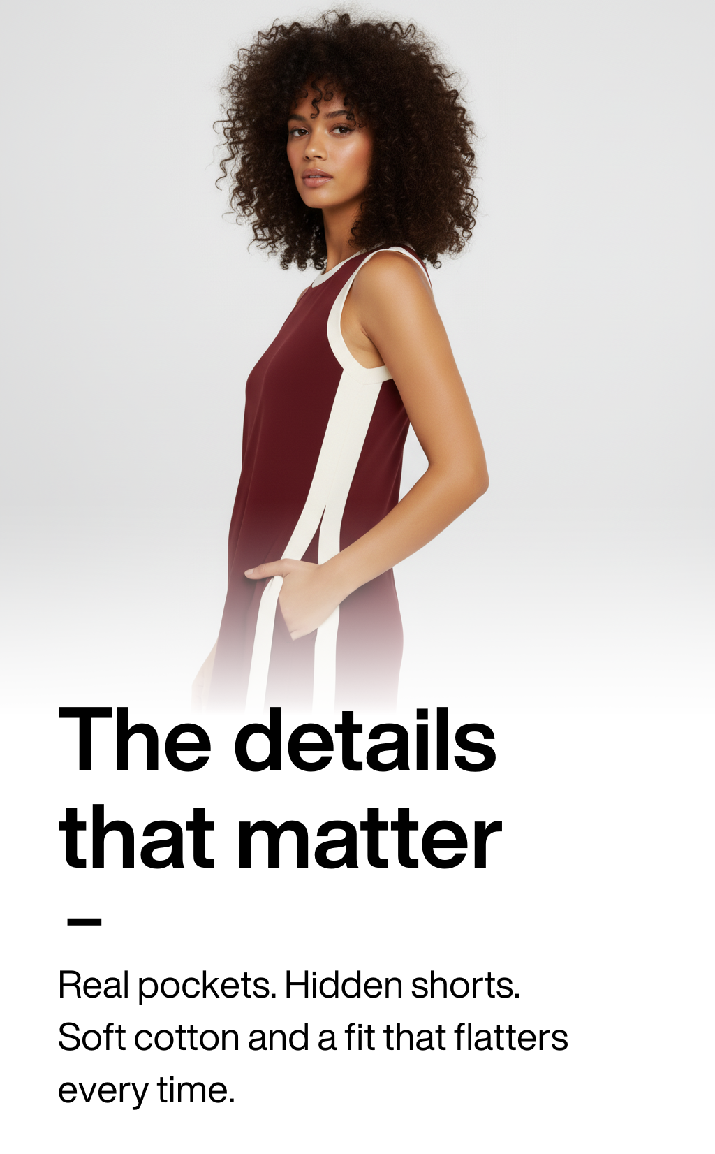 Looks like a dress, feels like your favorite set.Lightweight cotton, real pockets, and a fit that flatters every time.