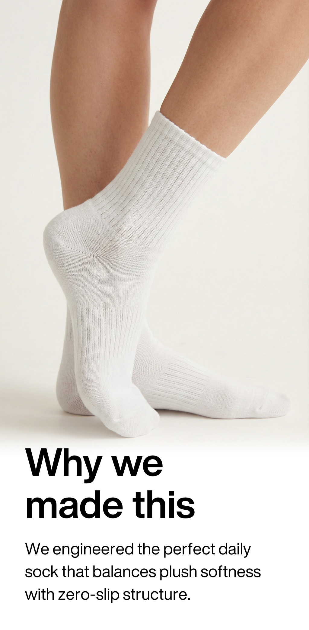 A classic crew length featuring a versatile, fine-ribbed texture. The minimalist silhouette is engineered to pair seamlessly with both elevated loungewear and everyday footwear.